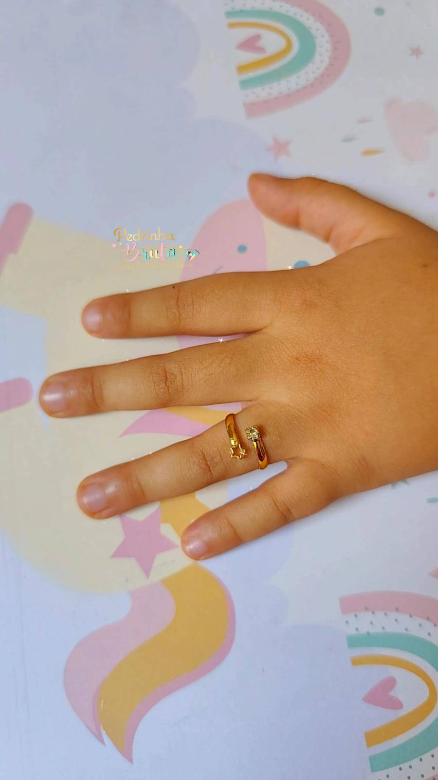 Anel Infantil Banhado a Ouro 18k de 10 milésimo com estrelinha vazada e pedra de Zircônia. Deixe a sua filha linda com nossas peças originais e divertida de anéis. São feitos com carinho e totalmente antialérgicos, ou seja, joias infantis hipoalérgicas e banhadas a ouro 18k sem níquel.
