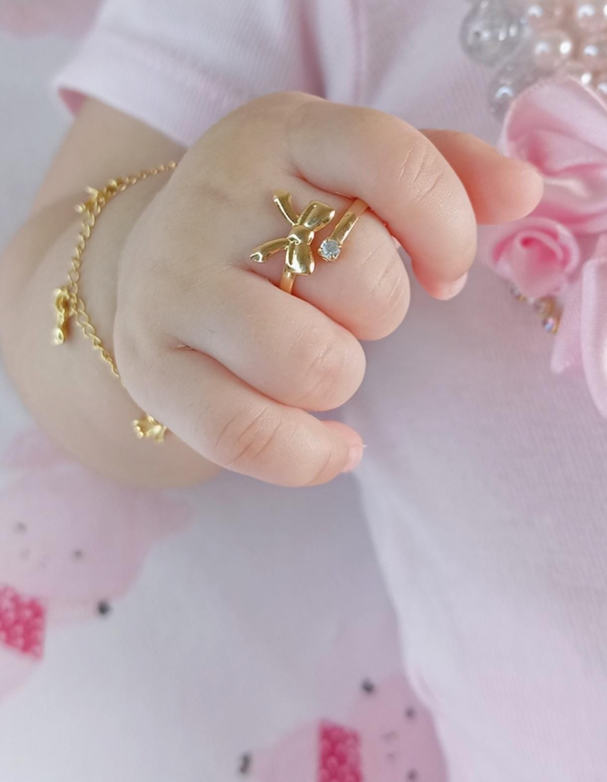 Anel Infantil Banhado a Ouro 18k de 10 milésimo com Laço e uma linda pedra de Zircônia. Deixe a sua filha linda com nossas peças originais e divertida de anéis.